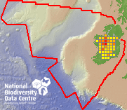 Distribution of the number of records recorded within each 10km grid square (ITM).Marine Map - 50km