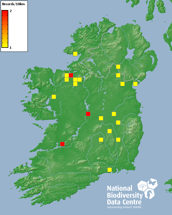 Distribution of the number of records recorded within each 10km grid square (ITM).Marine Map - 50km
