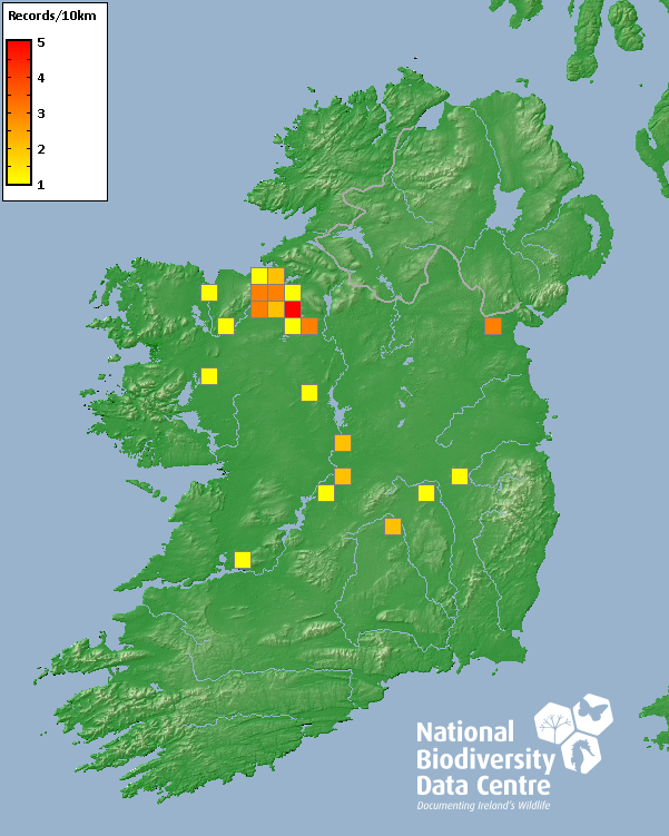 Distribution of the number of records recorded within each 10km grid square (ITM).Marine Map - 50km
