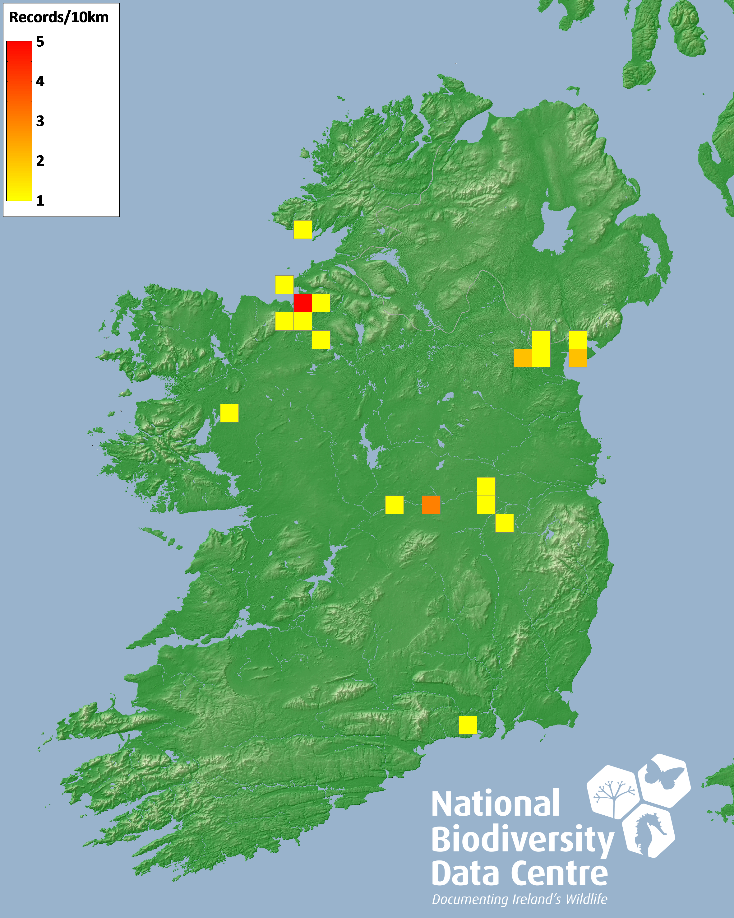 Distribution of the number of records recorded within each 10km grid square (ITM).Marine Map - 50km