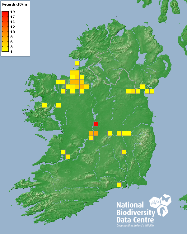 Distribution of the number of records recorded within each 10km grid square (ITM).Marine Map - 50km