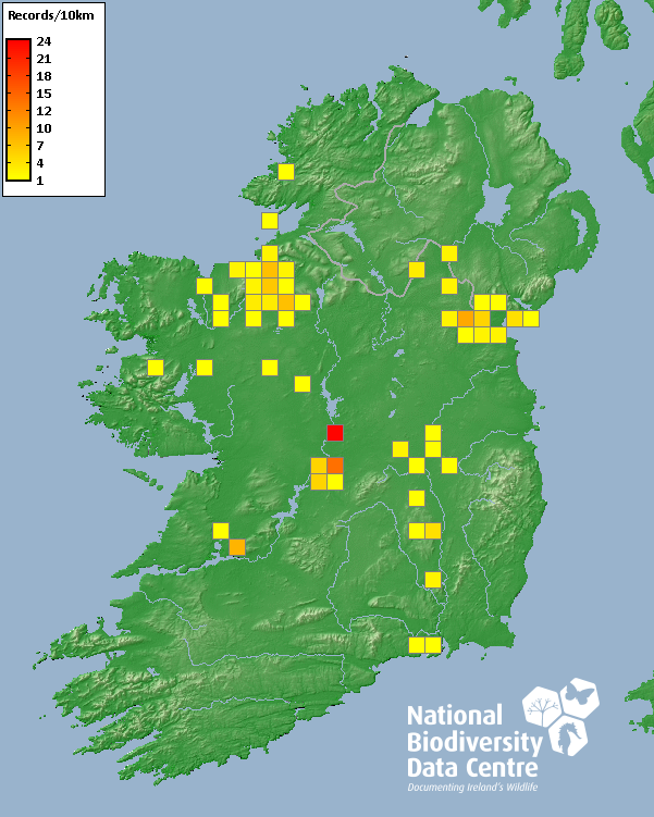 Distribution of the number of records recorded within each 10km grid square (ITM).Marine Map - 50km