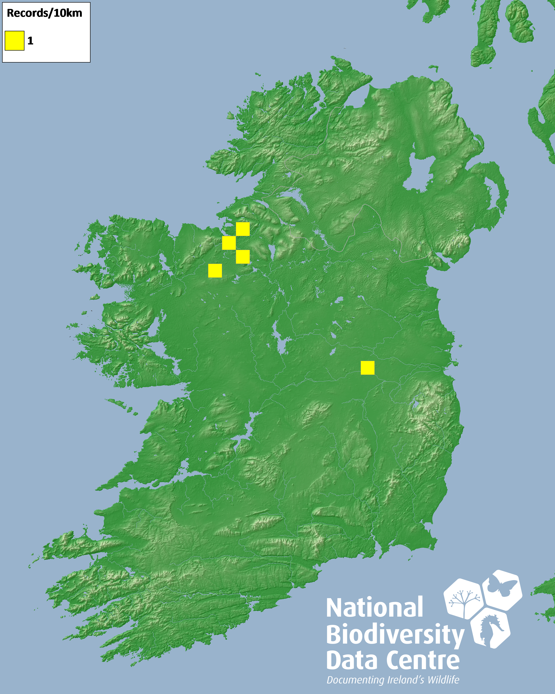 Distribution of the number of records recorded within each 10km grid square (ITM).Marine Map - 50km