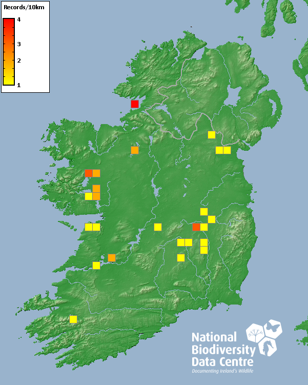 Distribution of the number of records recorded within each 10km grid square (ITM).Marine Map - 50km