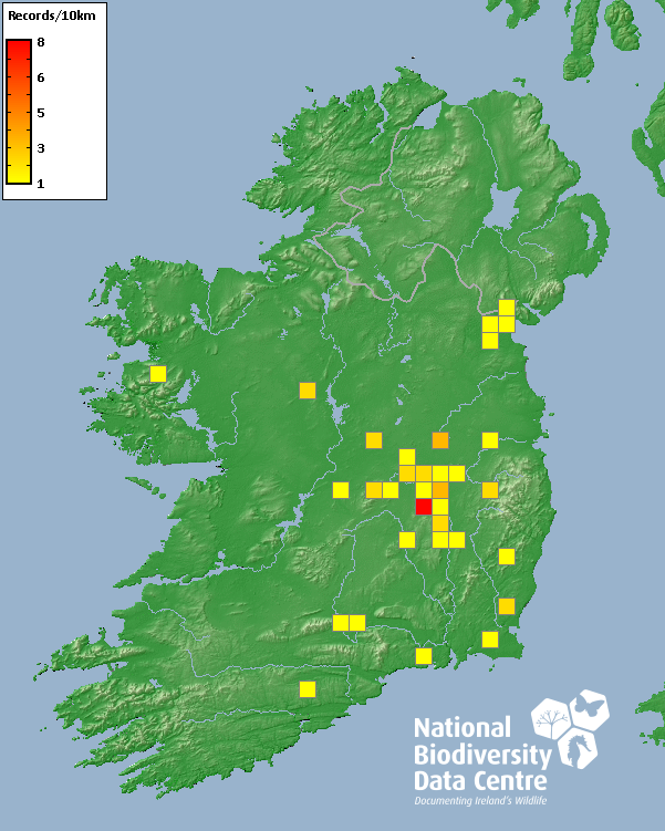 Distribution of the number of records recorded within each 10km grid square (ITM).Marine Map - 50km