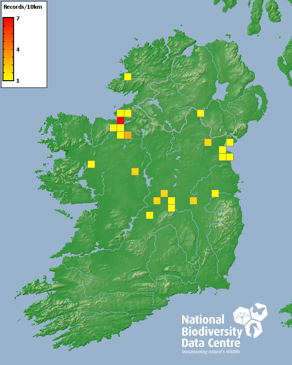 Distribution of the number of records recorded within each 10km grid square (ITM).Marine Map - 50km