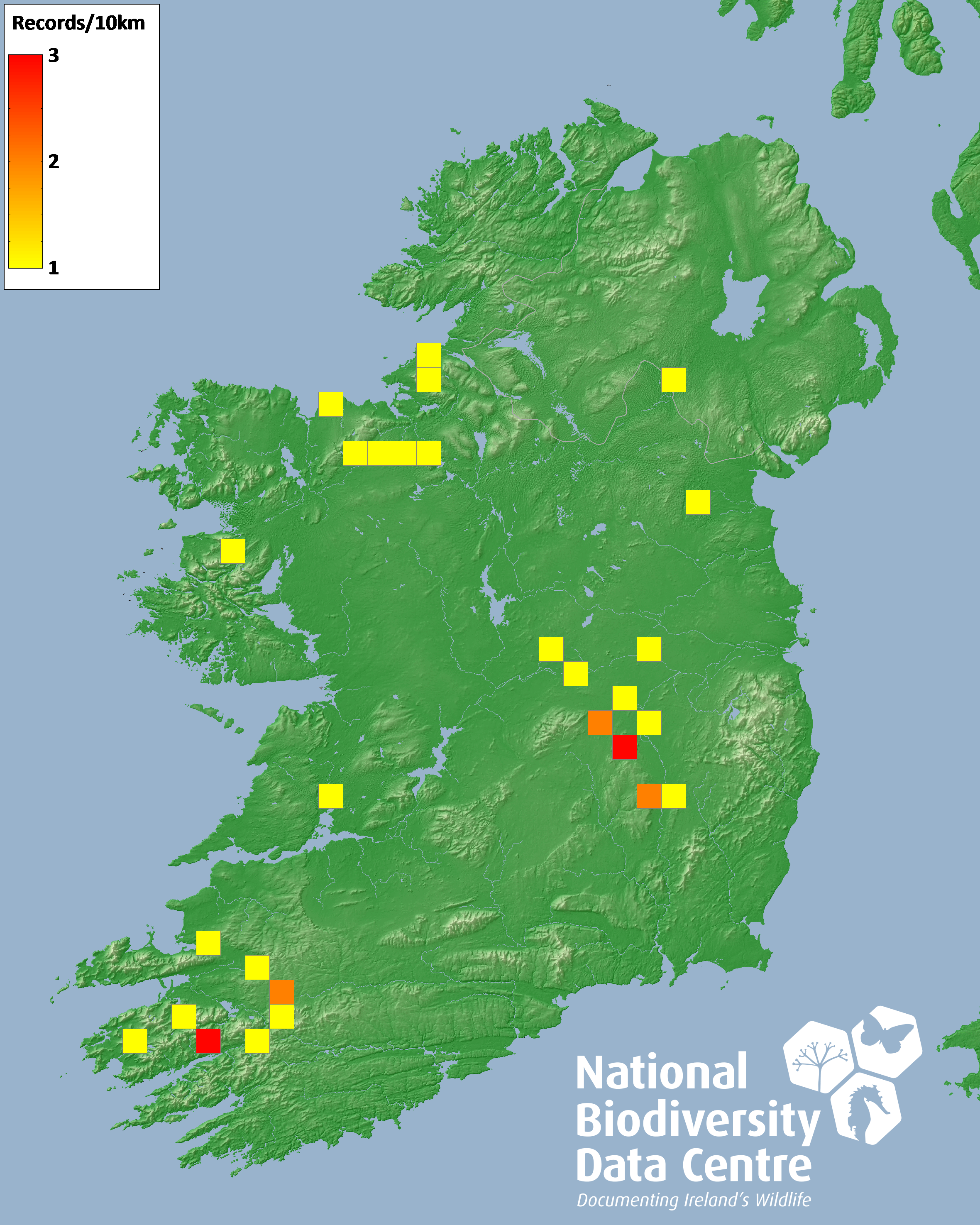 Distribution of the number of records recorded within each 10km grid square (ITM).Marine Map - 50km