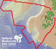Distribution of the number of records recorded within each 10km grid square (ITM).Marine Map - 50km