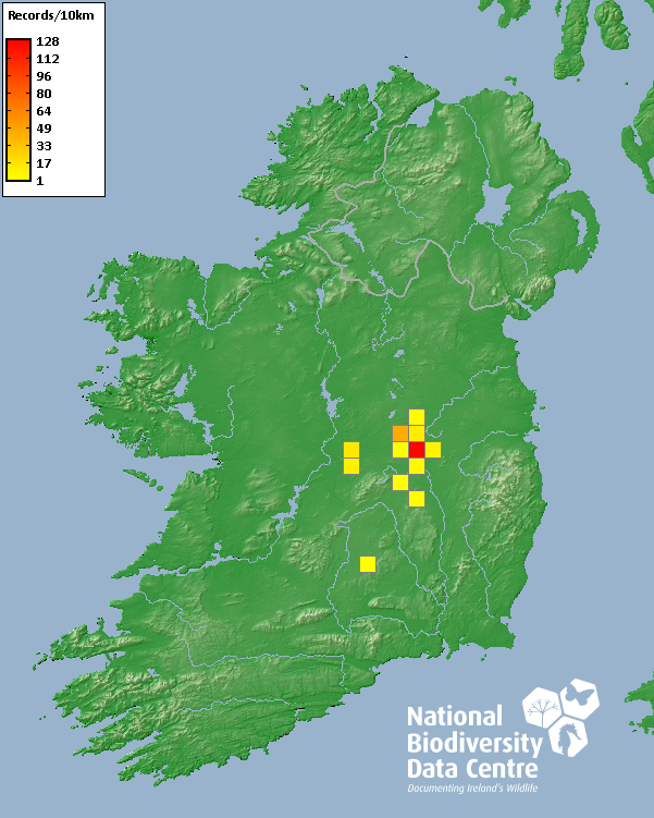 Distribution of the number of records recorded within each 10km grid square (ITM).Marine Map - 50km