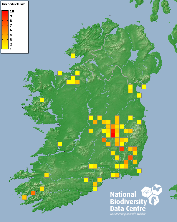 Distribution of the number of records recorded within each 10km grid square (ITM).Marine Map - 50km
