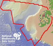 Distribution of the number of records recorded within each 10km grid square (ITM).Marine Map - 50km