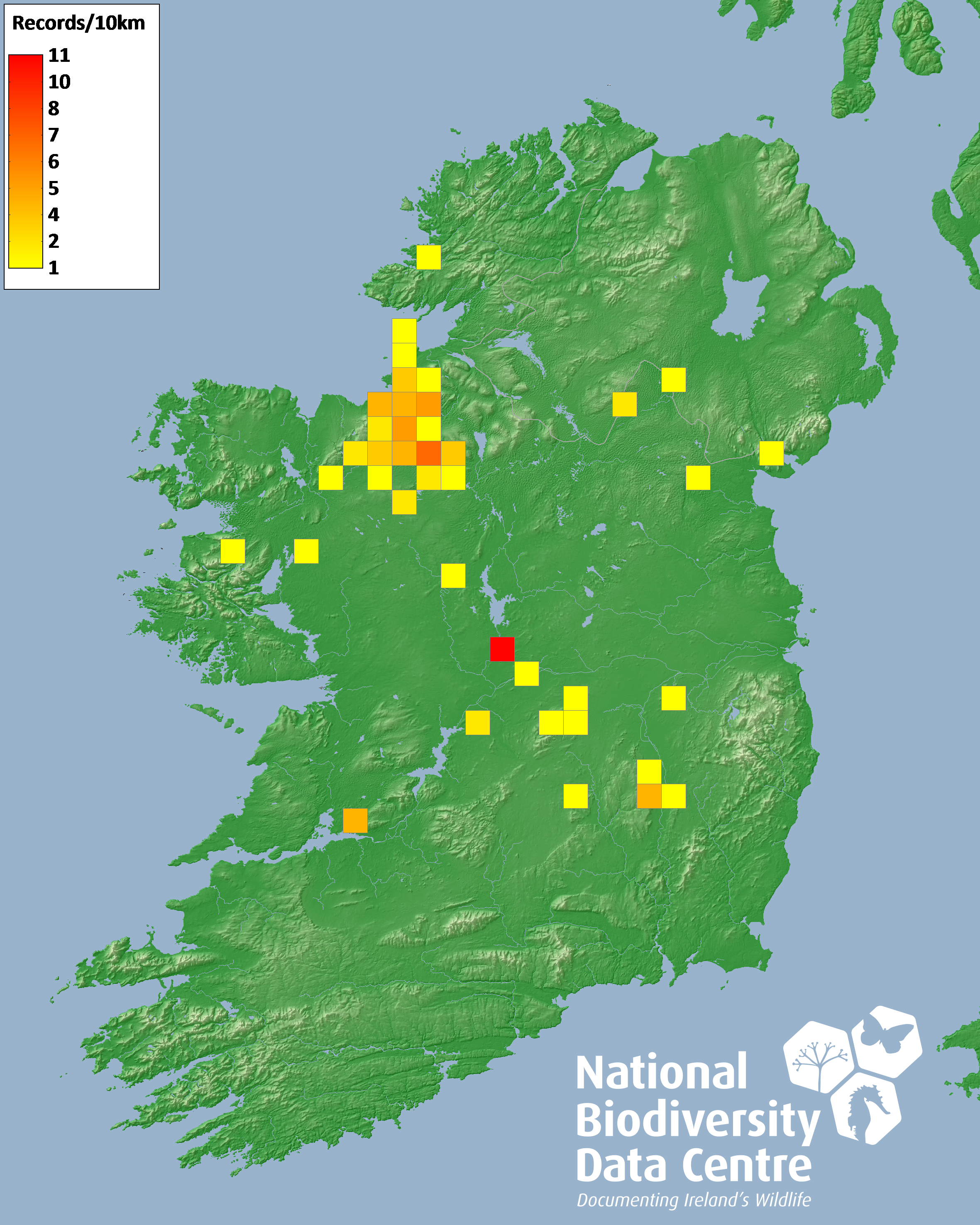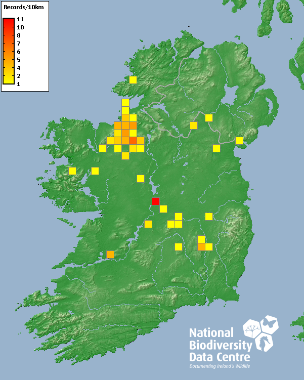 Distribution of the number of records recorded within each 10km grid square (ITM).Marine Map - 50km