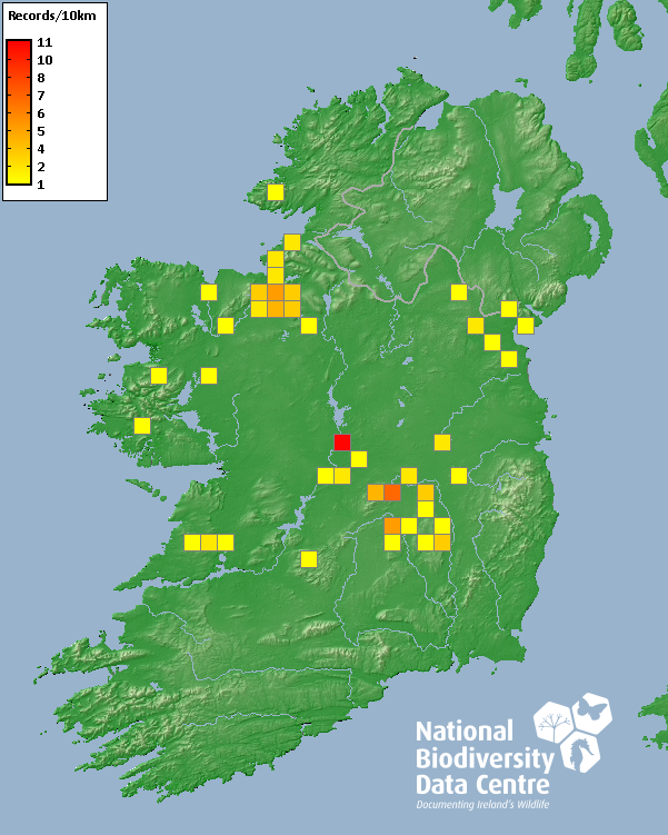 Distribution of the number of records recorded within each 10km grid square (ITM).Marine Map - 50km