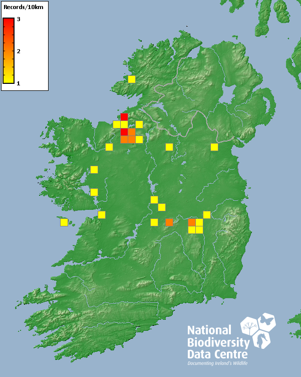 Distribution of the number of records recorded within each 10km grid square (ITM).Marine Map - 50km