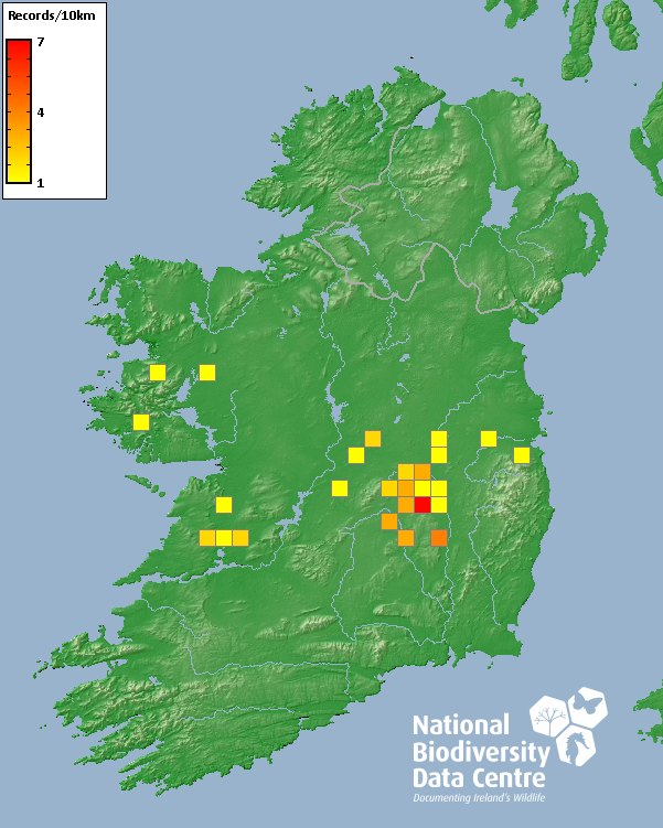Distribution of the number of records recorded within each 10km grid square (ITM).Marine Map - 50km