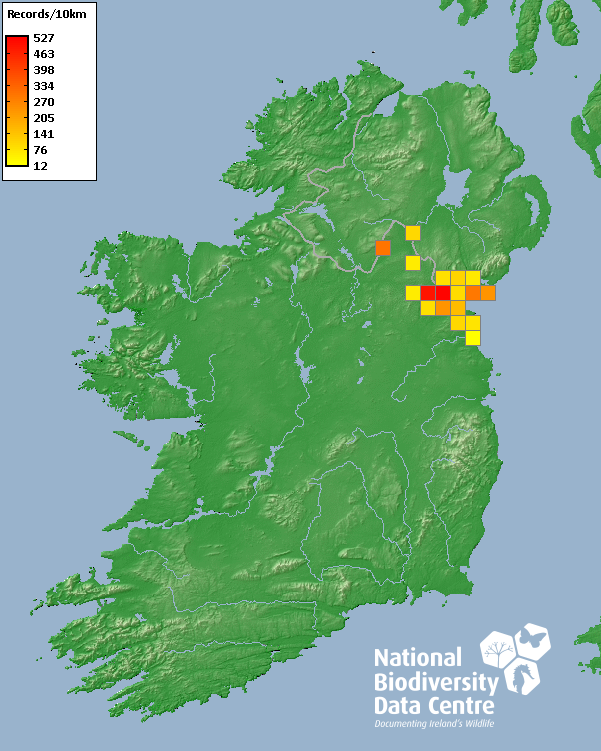 Distribution of the number of records within each 10km grid square (ITM).Marine Map - 50Km
