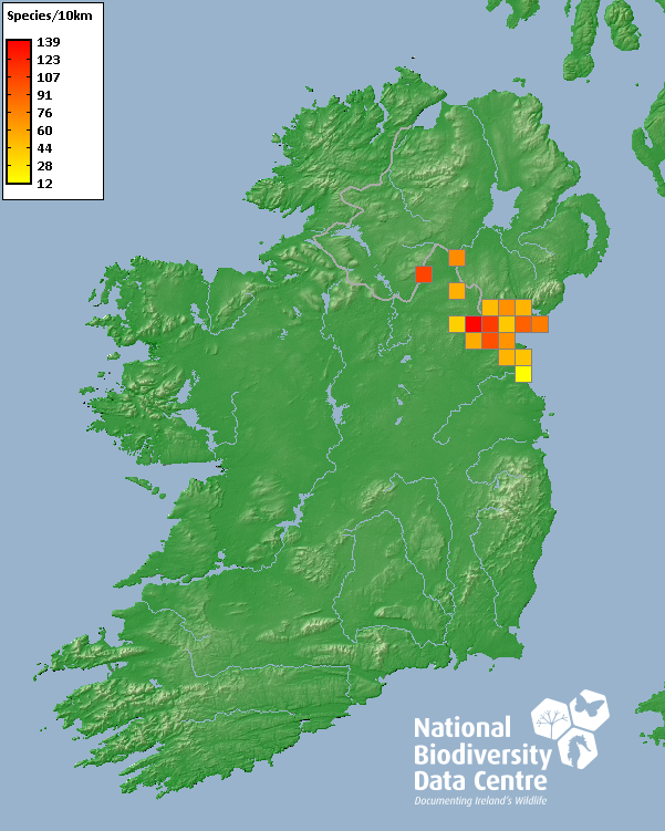 Distribution of the number of species recorded within each 10km grid square (ITM).Marine Map - 50Km