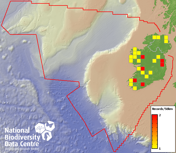 Distribution of the number of records recorded within each 10km grid square (ITM).Marine Map - 50km