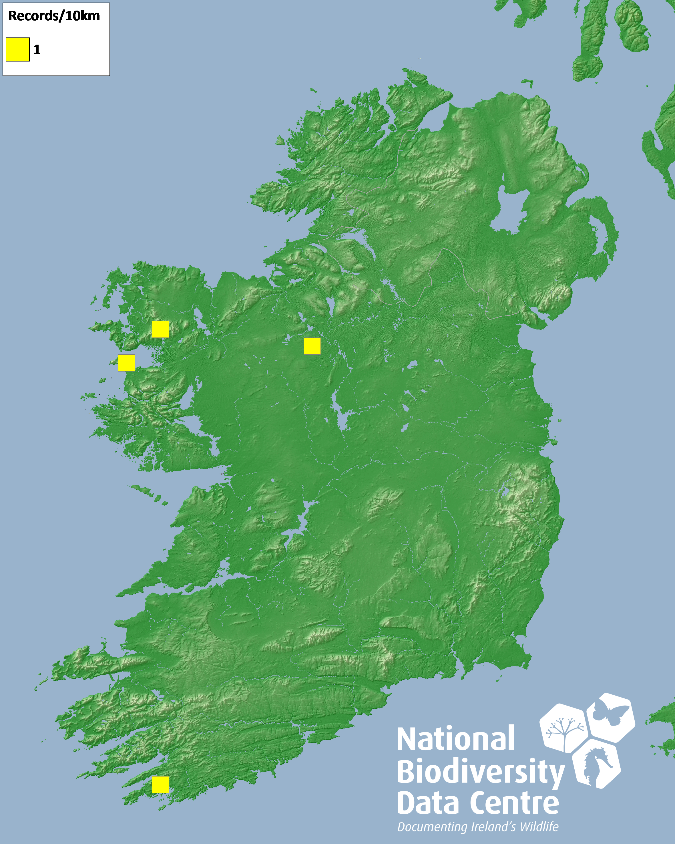 Distribution of the number of records recorded within each 10km grid square (ITM).Marine Map - 50km