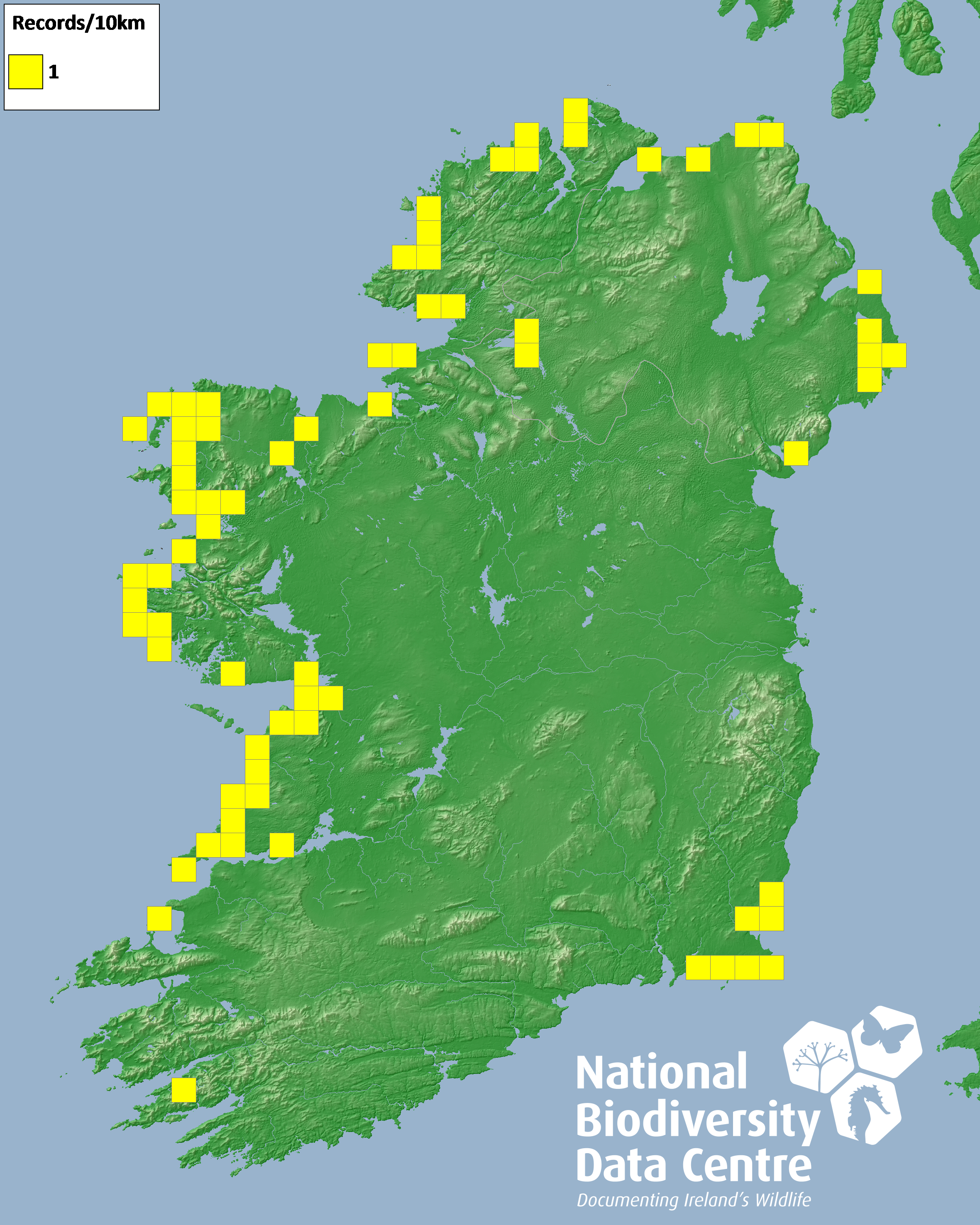 Distribution of the number of records recorded within each 10km grid square (ITM).Marine Map - 50km