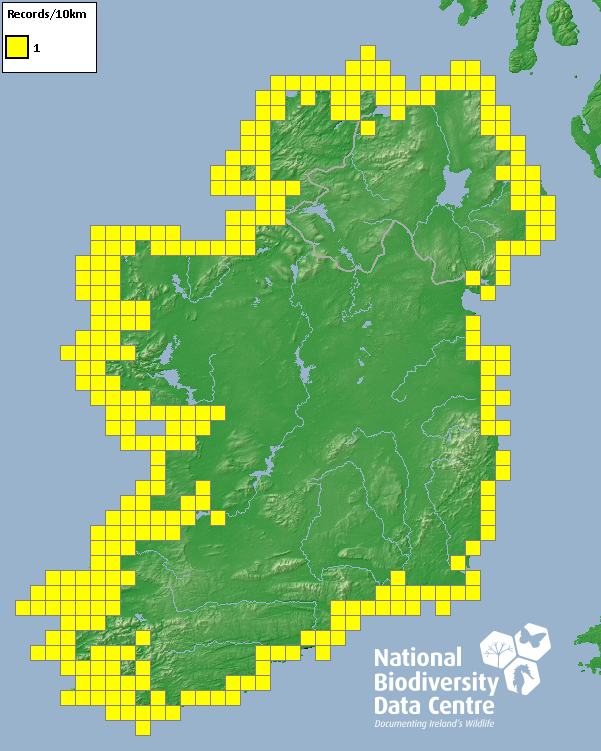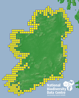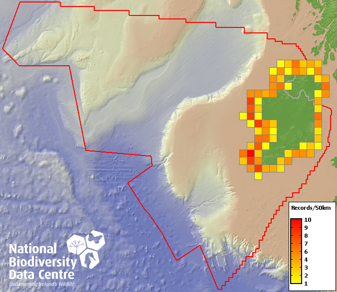 Distribution of the number of records recorded within each 10km grid square (ITM).Marine Map - 50km