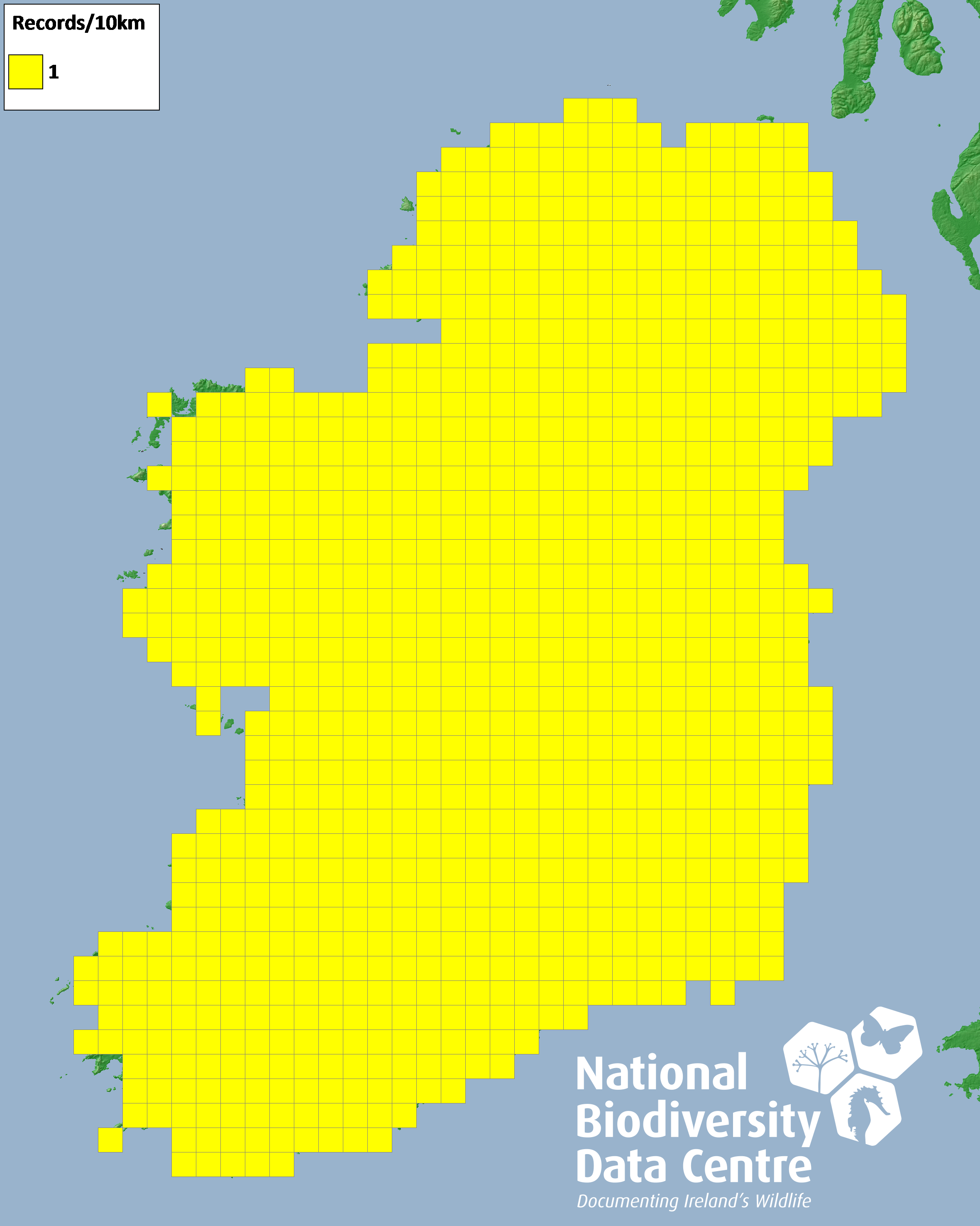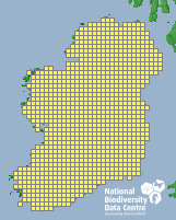 Distribution of the number of records recorded within each 10km grid square (ITM).Marine Map - 50km