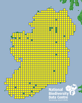 Distribution of the number of records recorded within each 10km grid square (ITM).Marine Map - 50km