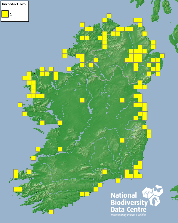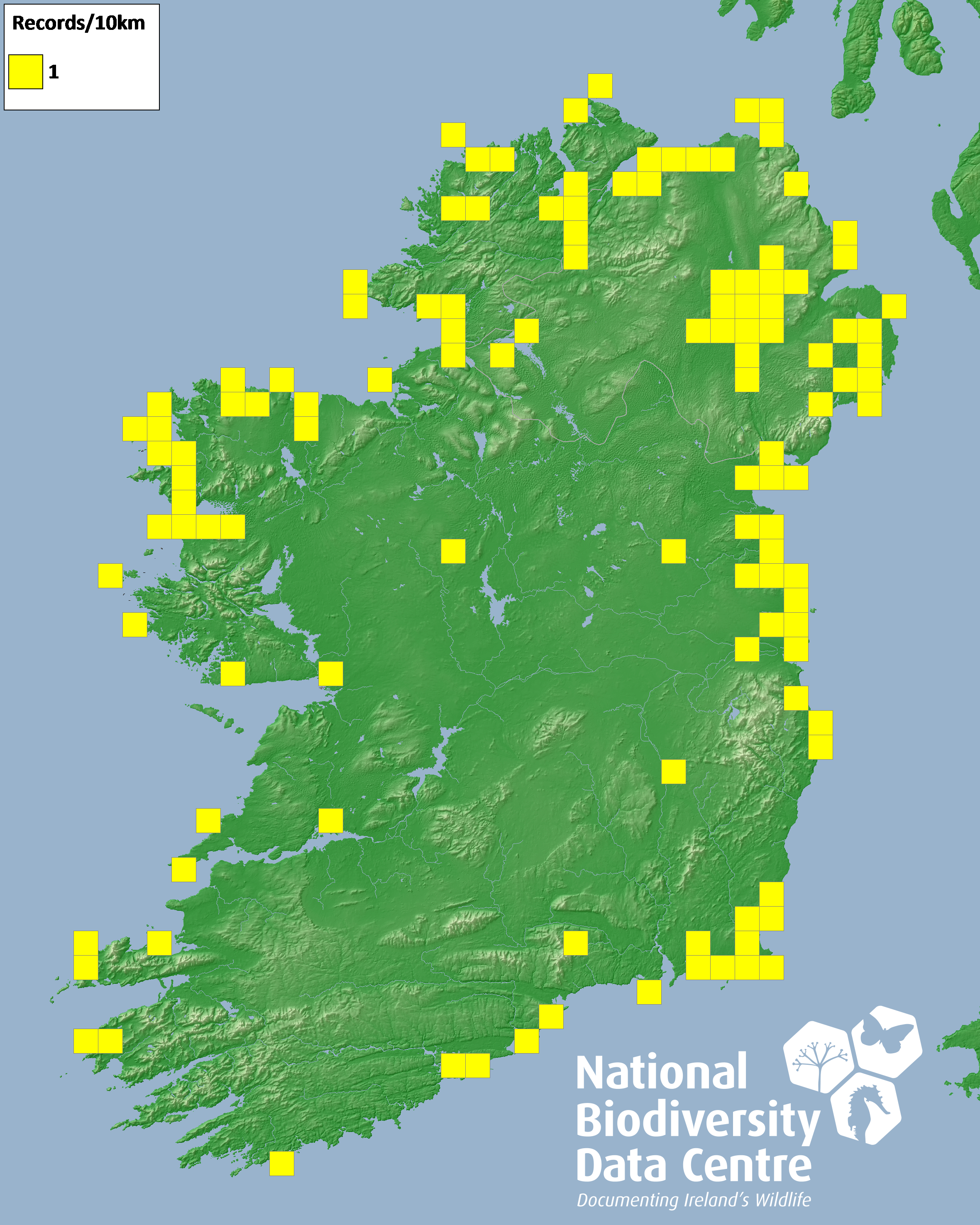 Distribution of the number of records recorded within each 10km grid square (ITM).Marine Map - 50km