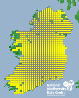 Distribution of the number of records recorded within each 10km grid square (ITM).Marine Map - 50km