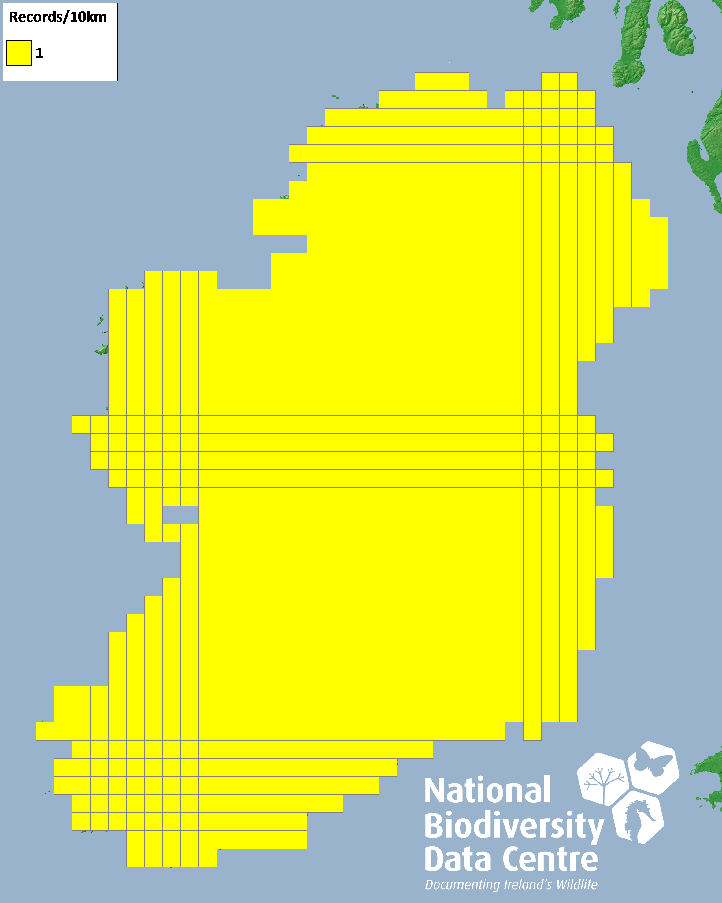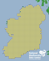 Distribution of the number of records recorded within each 10km grid square (ITM).Marine Map - 50km