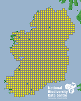 Distribution of the number of records recorded within each 10km grid square (ITM).Marine Map - 50km