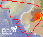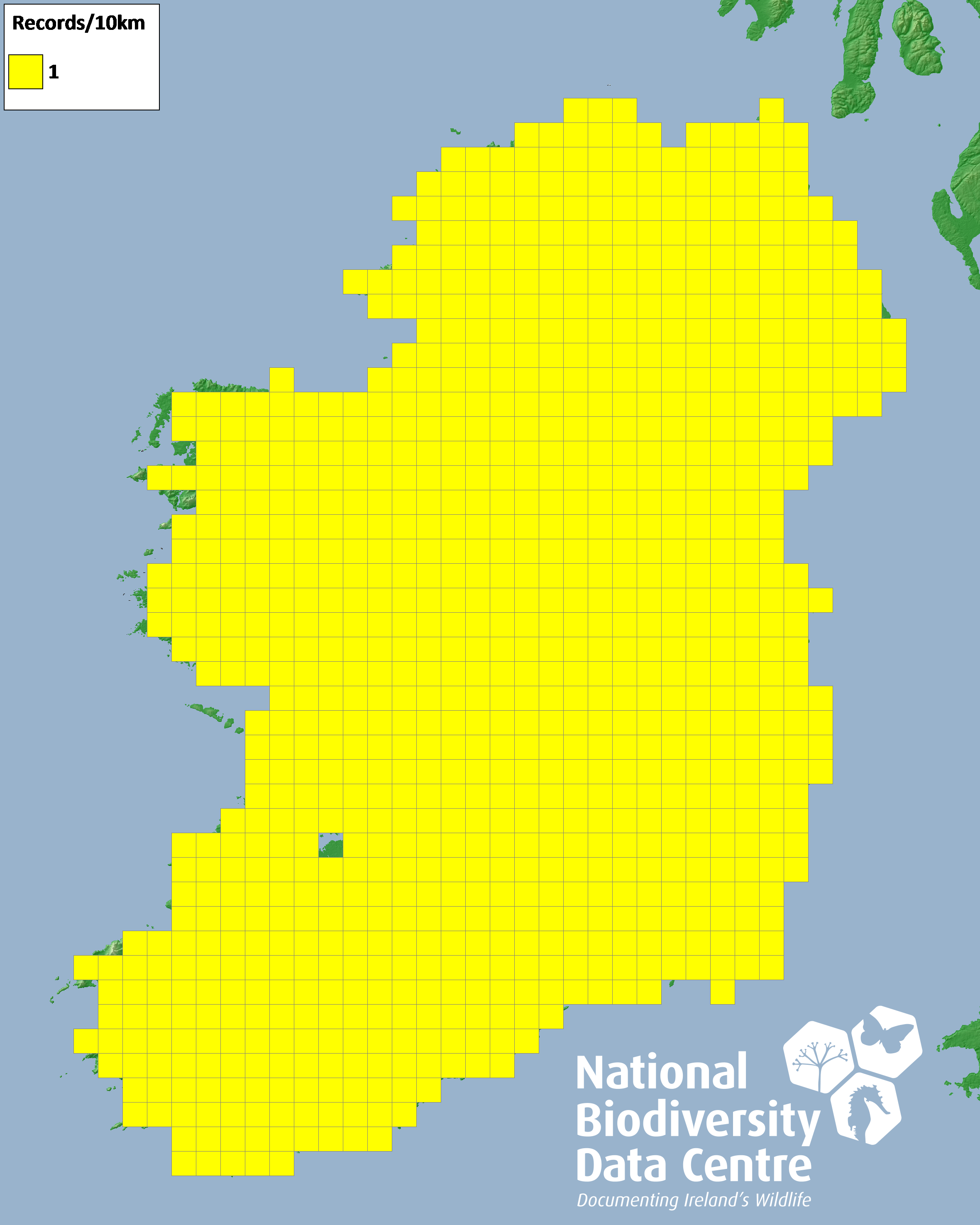 Distribution of the number of records recorded within each 10km grid square (ITM).Marine Map - 50km