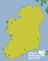 Distribution of the number of records recorded within each 10km grid square (ITM).Marine Map - 50km