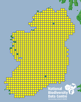 Distribution of the number of records recorded within each 10km grid square (ITM).Marine Map - 50km