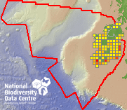 Distribution of the number of records recorded within each 10km grid square (ITM).Marine Map - 50km