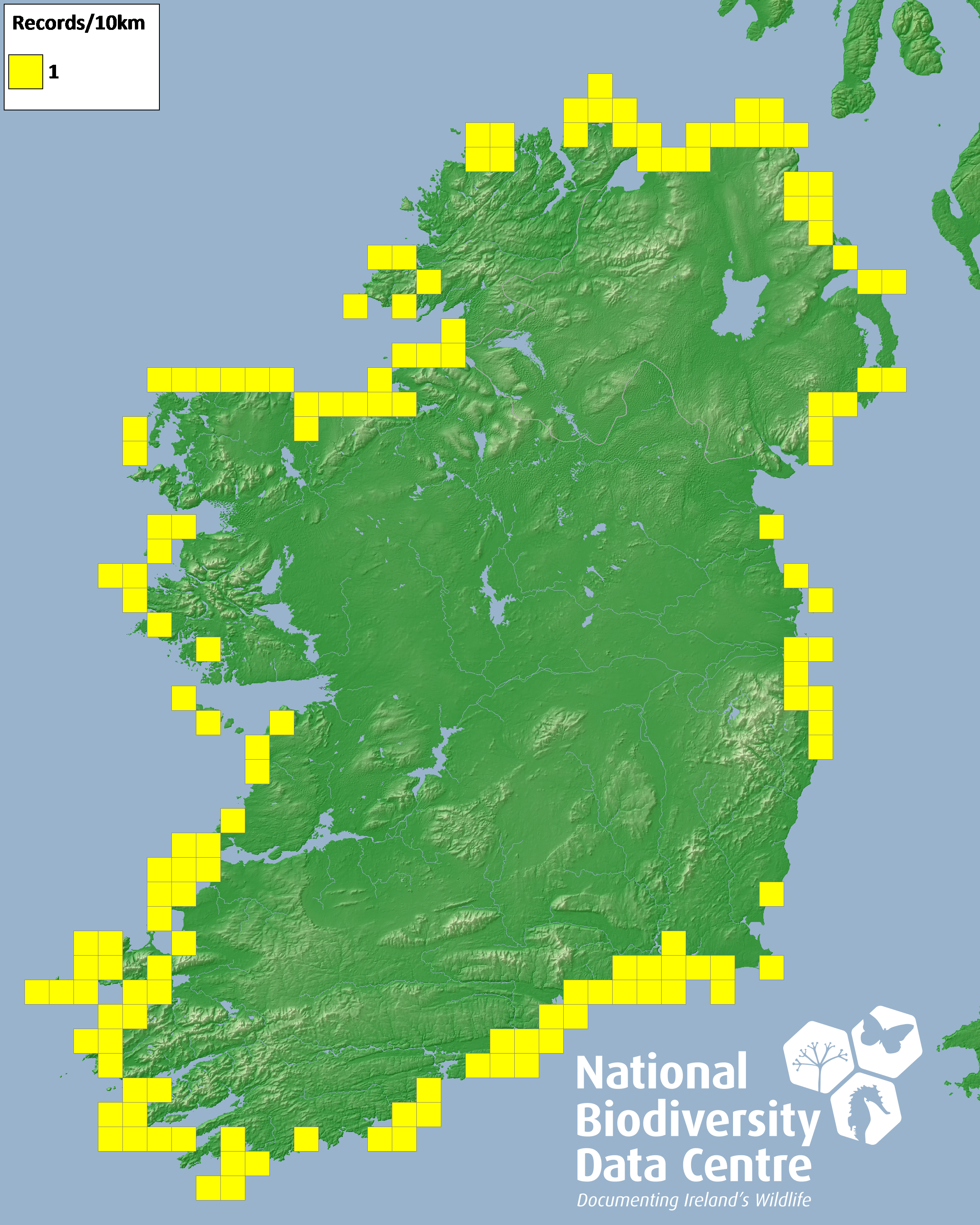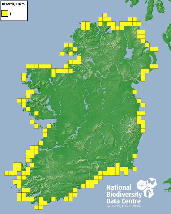 Distribution of the number of records recorded within each 10km grid square (ITM).Marine Map - 50km