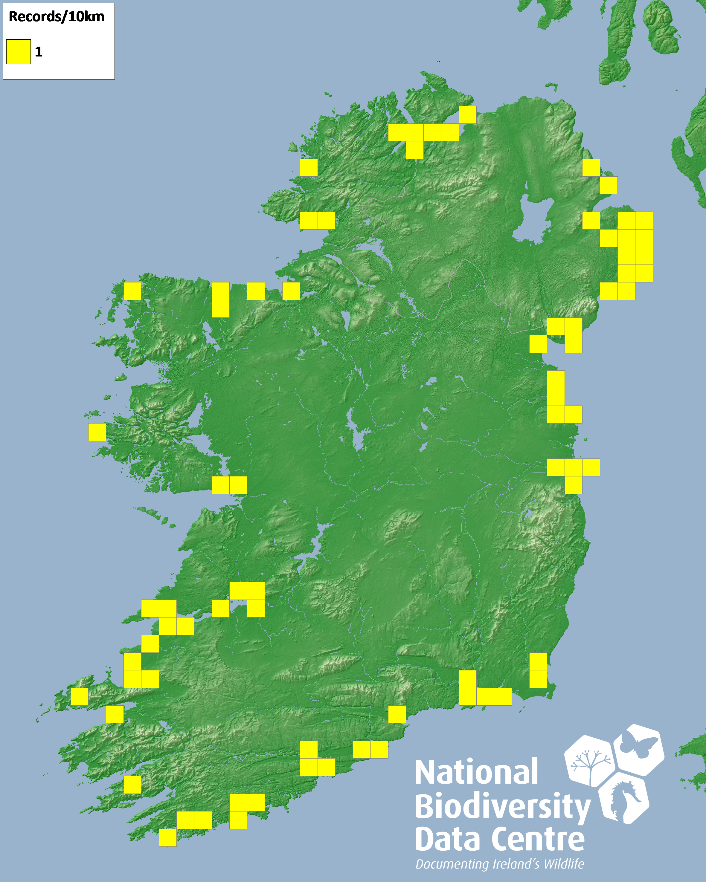 Distribution of the number of records recorded within each 10km grid square (ITM).Marine Map - 50km
