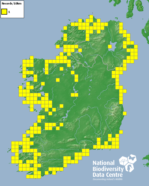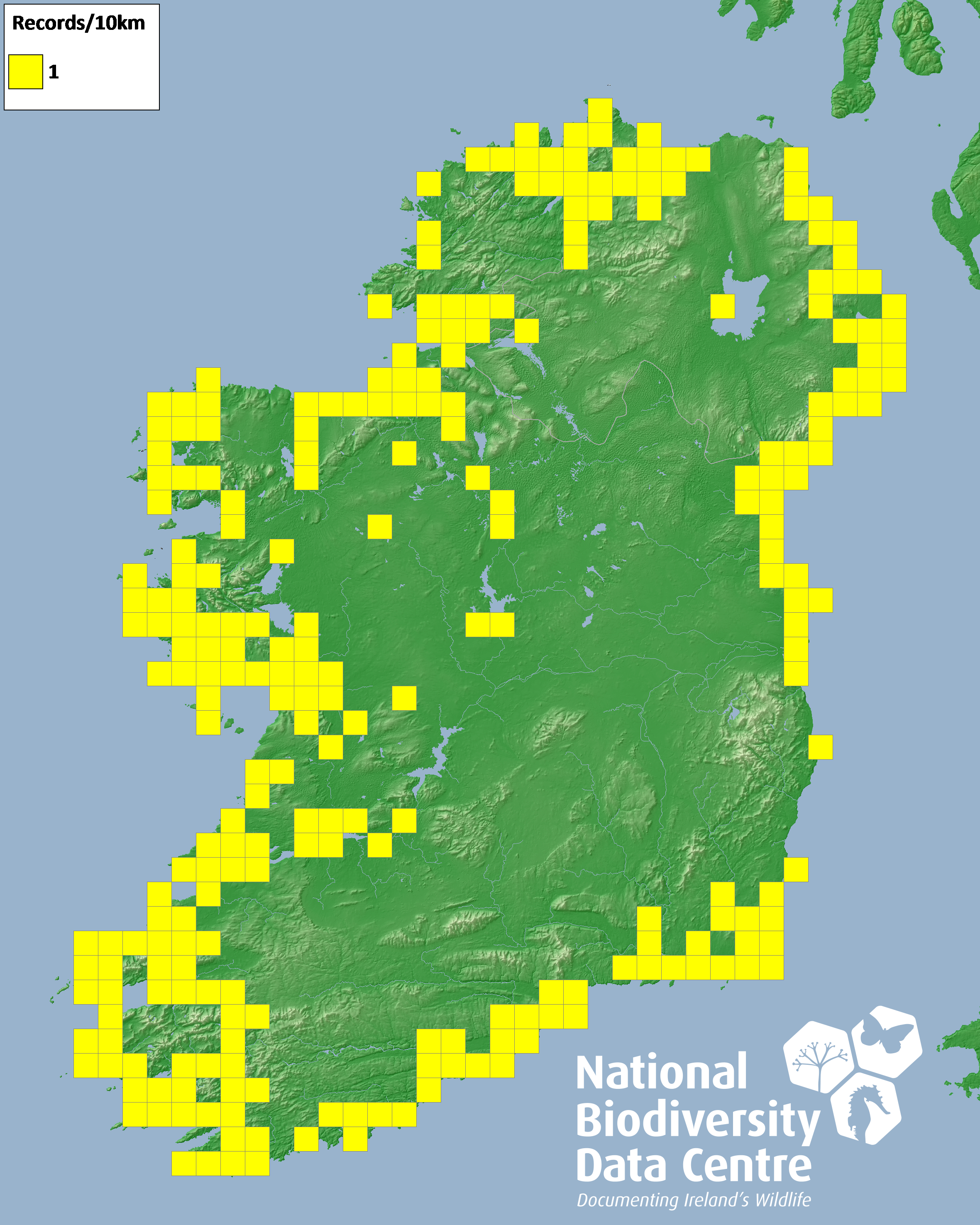 Distribution of the number of records recorded within each 10km grid square (ITM).Marine Map - 50km
