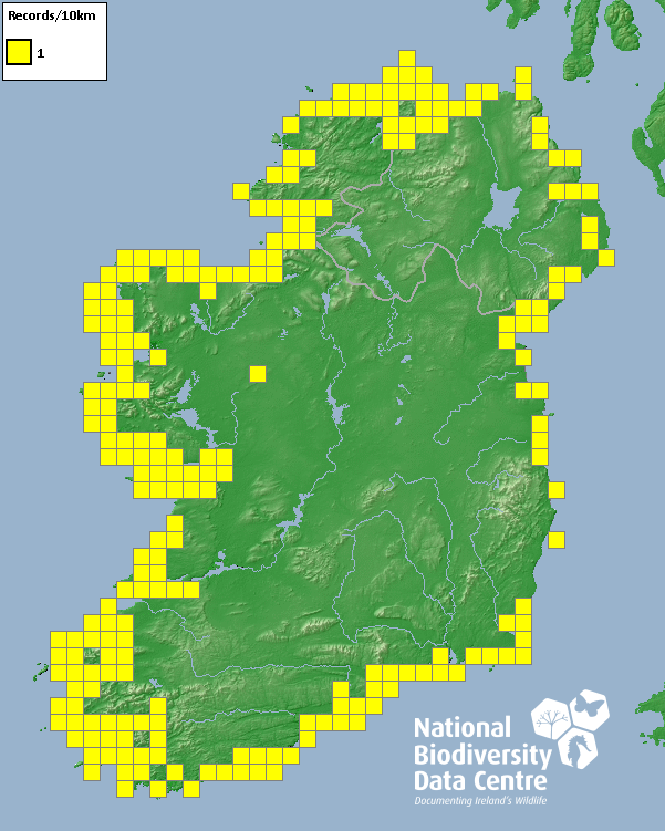 Distribution of the number of records recorded within each 10km grid square (ITM).Marine Map - 50km