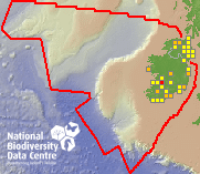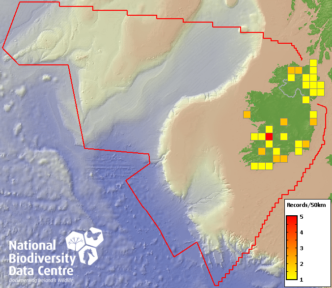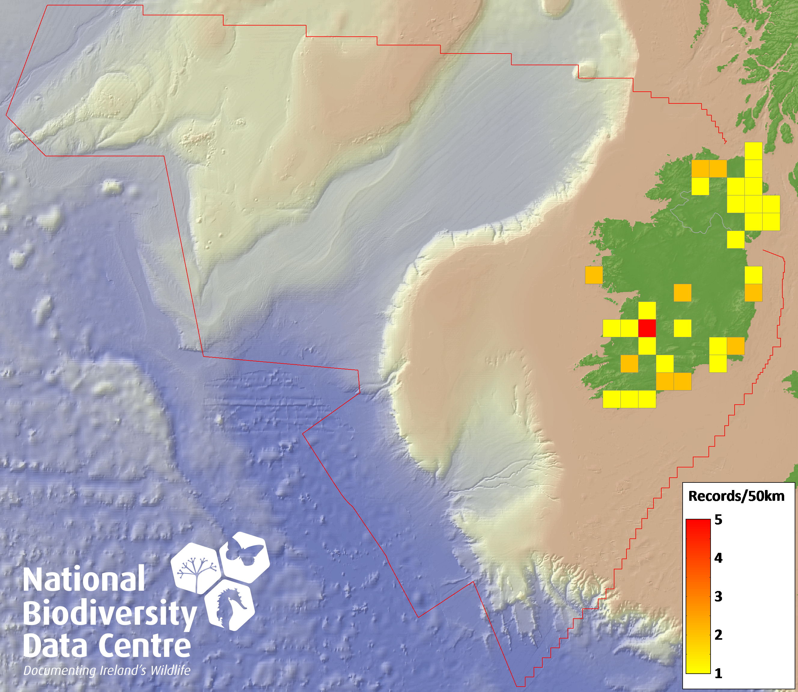 Distribution of the number of records recorded within each 10km grid square (ITM).Marine Map - 50km