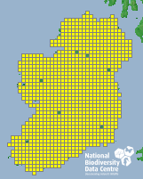 Distribution of the number of records recorded within each 10km grid square (ITM).Marine Map - 50km