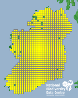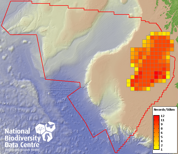 Distribution of the number of records recorded within each 10km grid square (ITM).Marine Map - 50km