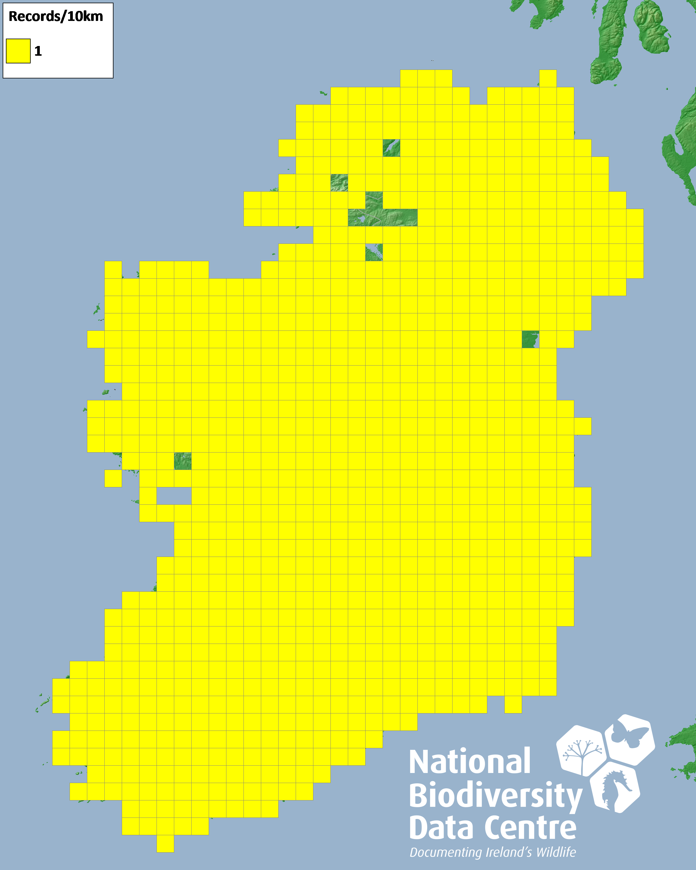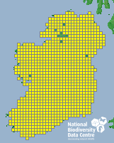 Distribution of the number of records recorded within each 10km grid square (ITM).Marine Map - 50km