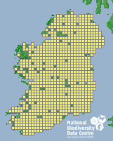 Distribution of the number of records recorded within each 10km grid square (ITM).Marine Map - 50km