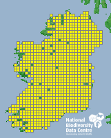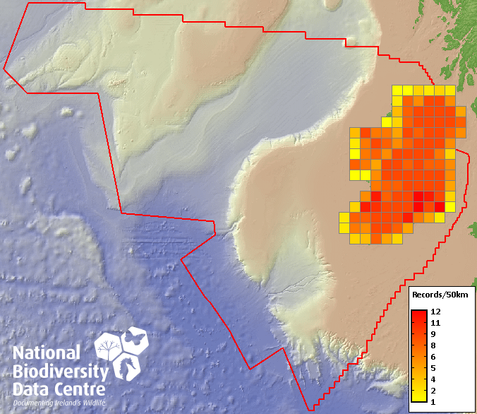 Distribution of the number of records recorded within each 10km grid square (ITM).Marine Map - 50km
