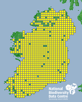 Distribution of the number of records recorded within each 10km grid square (ITM).Marine Map - 50km