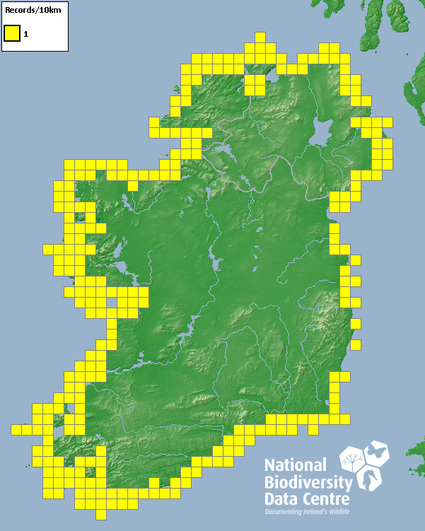 Distribution of the number of records recorded within each 10km grid square (ITM).Marine Map - 50km