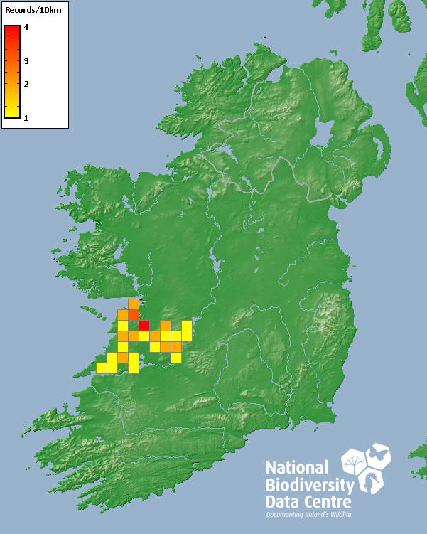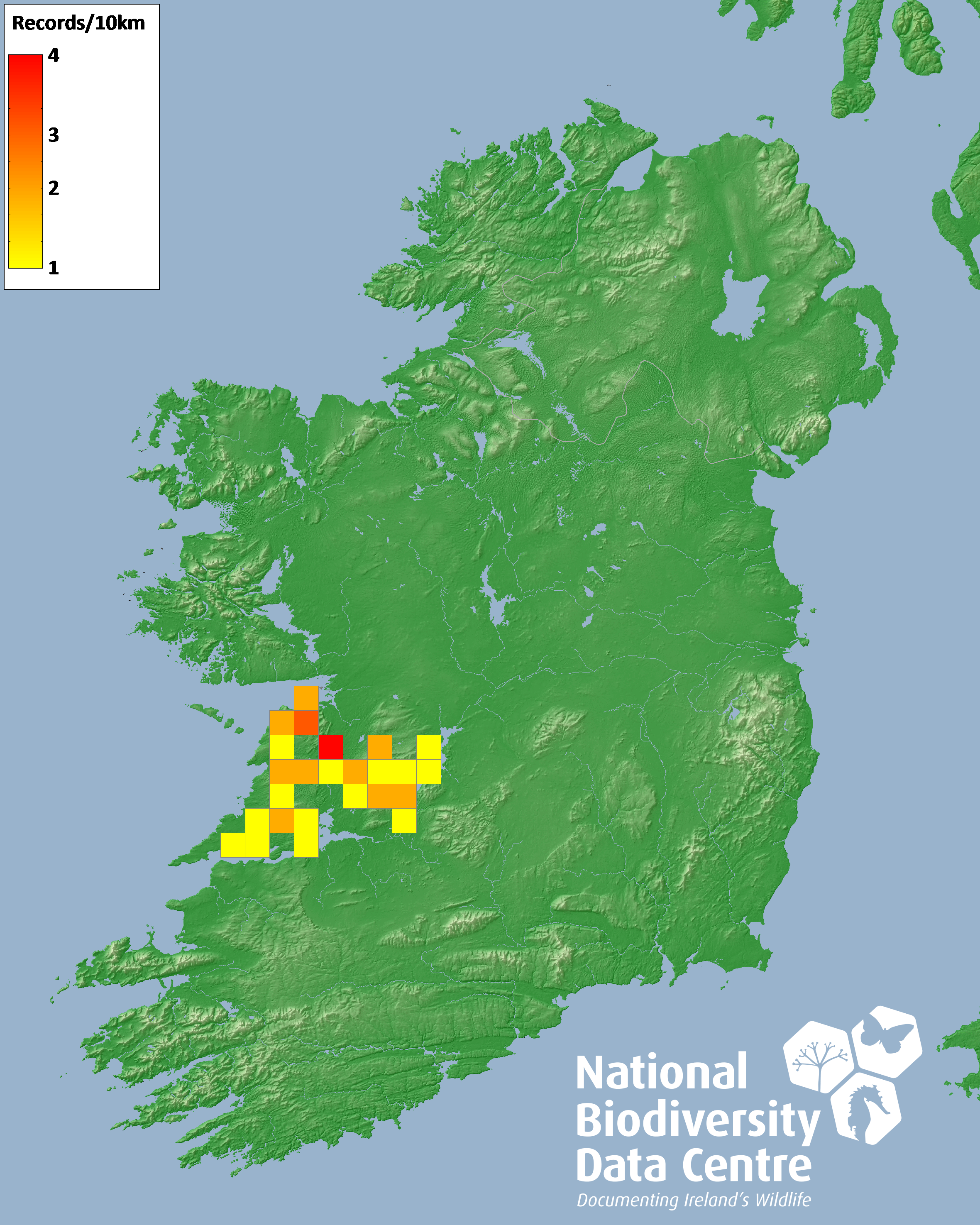 Distribution of the number of records recorded within each 10km grid square (ITM).Marine Map - 50km