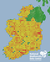 Distribution of the number of records recorded within each 10km grid square (ITM).Marine Map - 50km