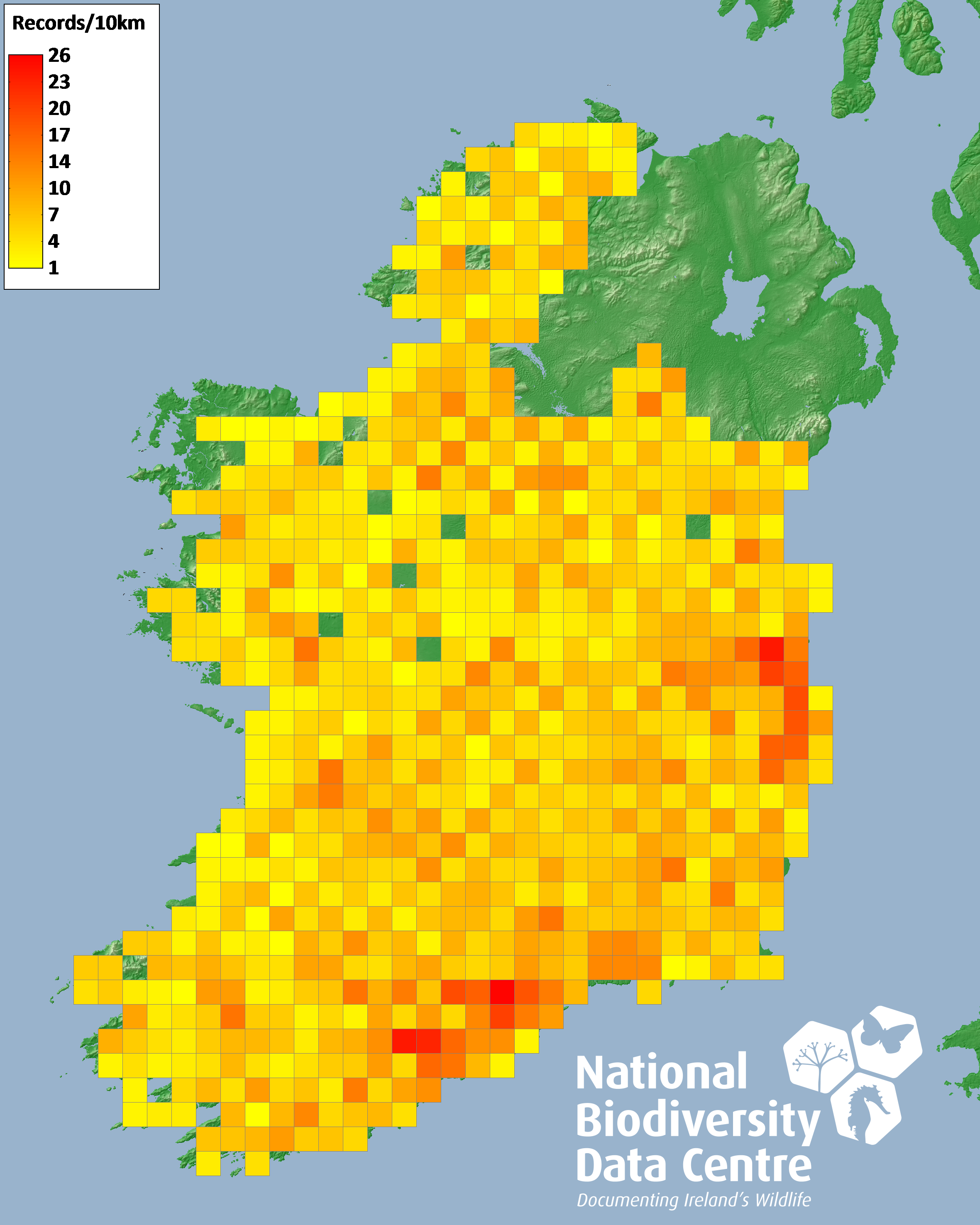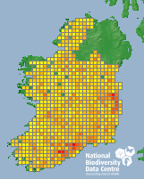 Distribution of the number of records recorded within each 10km grid square (ITM).Marine Map - 50km